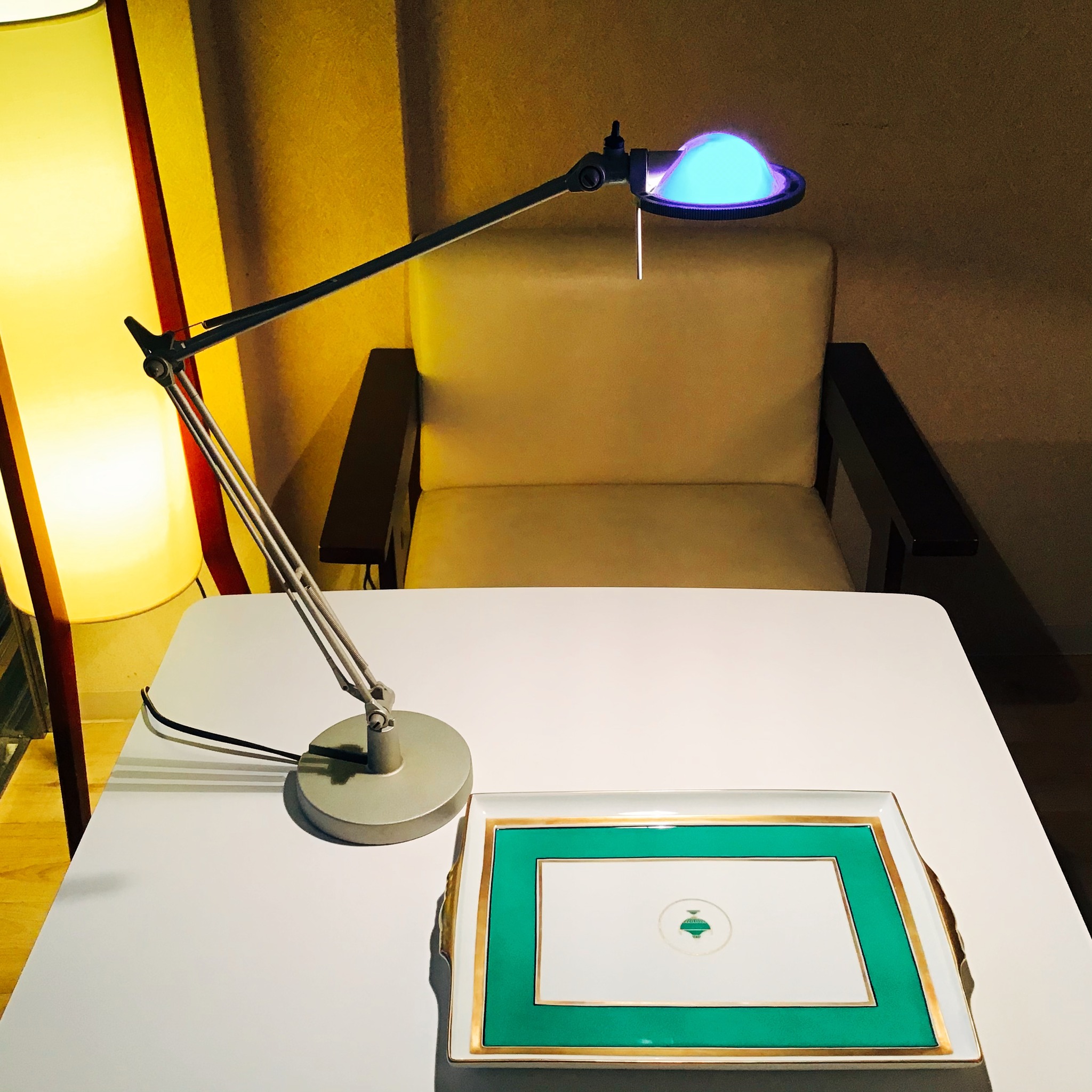 引き続き照明にハマっています。イタリー照明ブランド、ルーチェプランのアームライト(ベレニーチェ)をアンティークショップで入手しました。一ヶ月くらい購入しようか迷って、あは。。青いガラスセードの美しさがカッコいいです。クラシックで機能美を追求した形とモダン的なデザインが近未来的なオブジェのような存在感があります。日が暮れるのが早くなりましたが、いくつかの灯りでやさしく照らされた夕方のカフェもいいものです。鍋で煮込んだロイヤルミルクティーやカフェオレと。